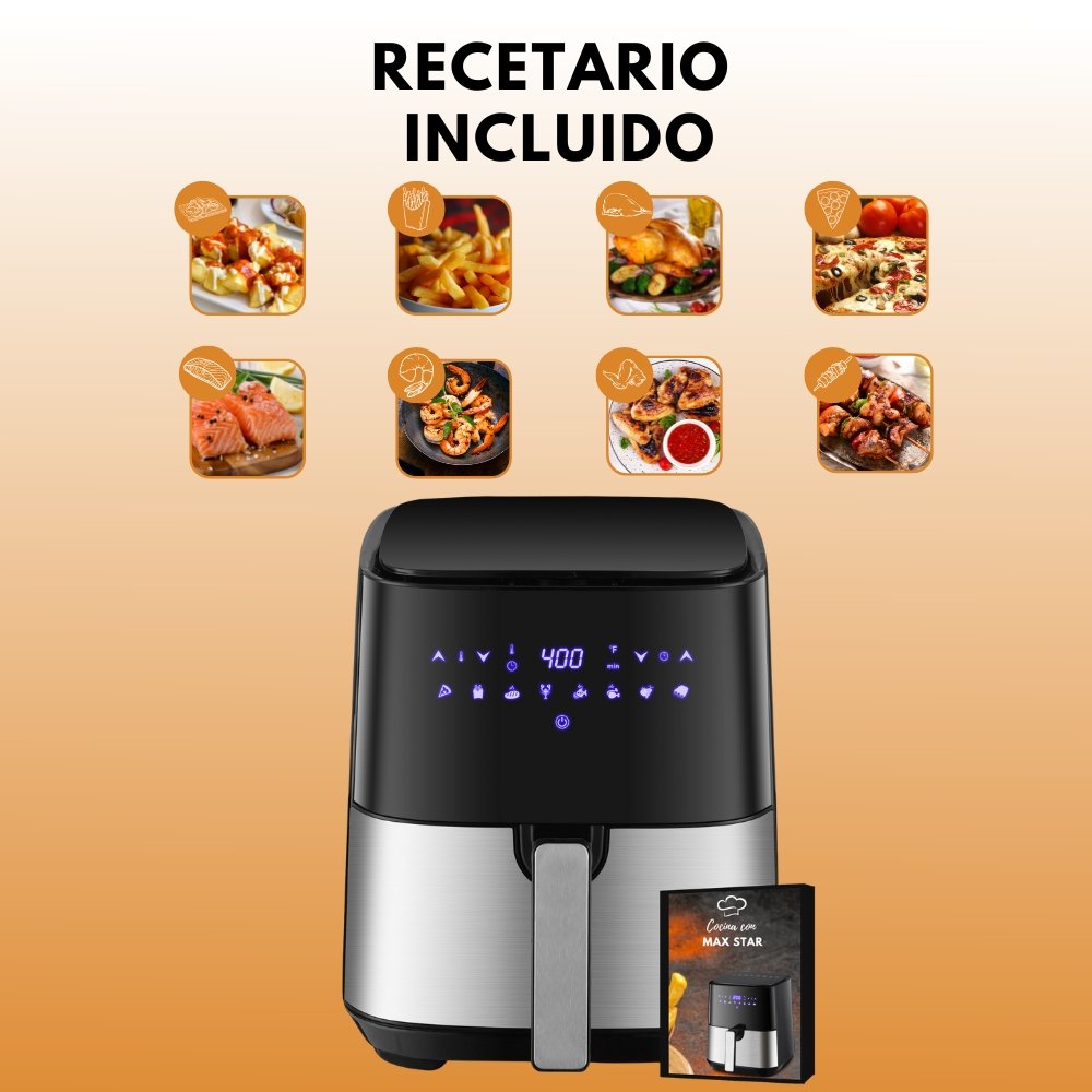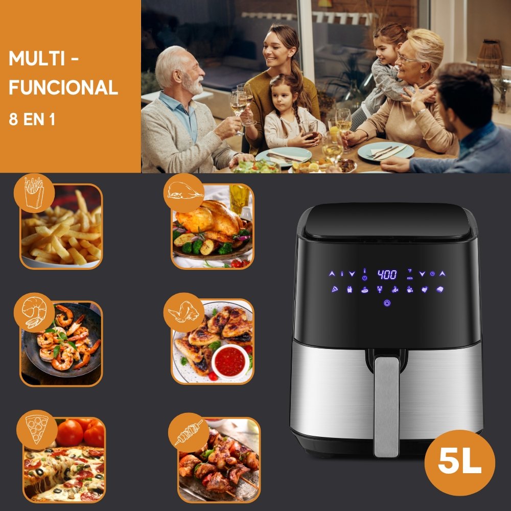 Sirve todos los alimentos fritos que te encantan a ti y tu familia en casa sin el exceso de aceite o grasa; con ajustes preestablecidos para una cocción fácil y un rango de temperatura de 200-400 ° f, logrando un acabado frito y crujiente con al menos un 80% menos de aceite que las freidoras tradicionales; fríe al aire verduras, pizza, alimentos congelados e incluso las sobras para obtener un crujiente perfecto en minutos.