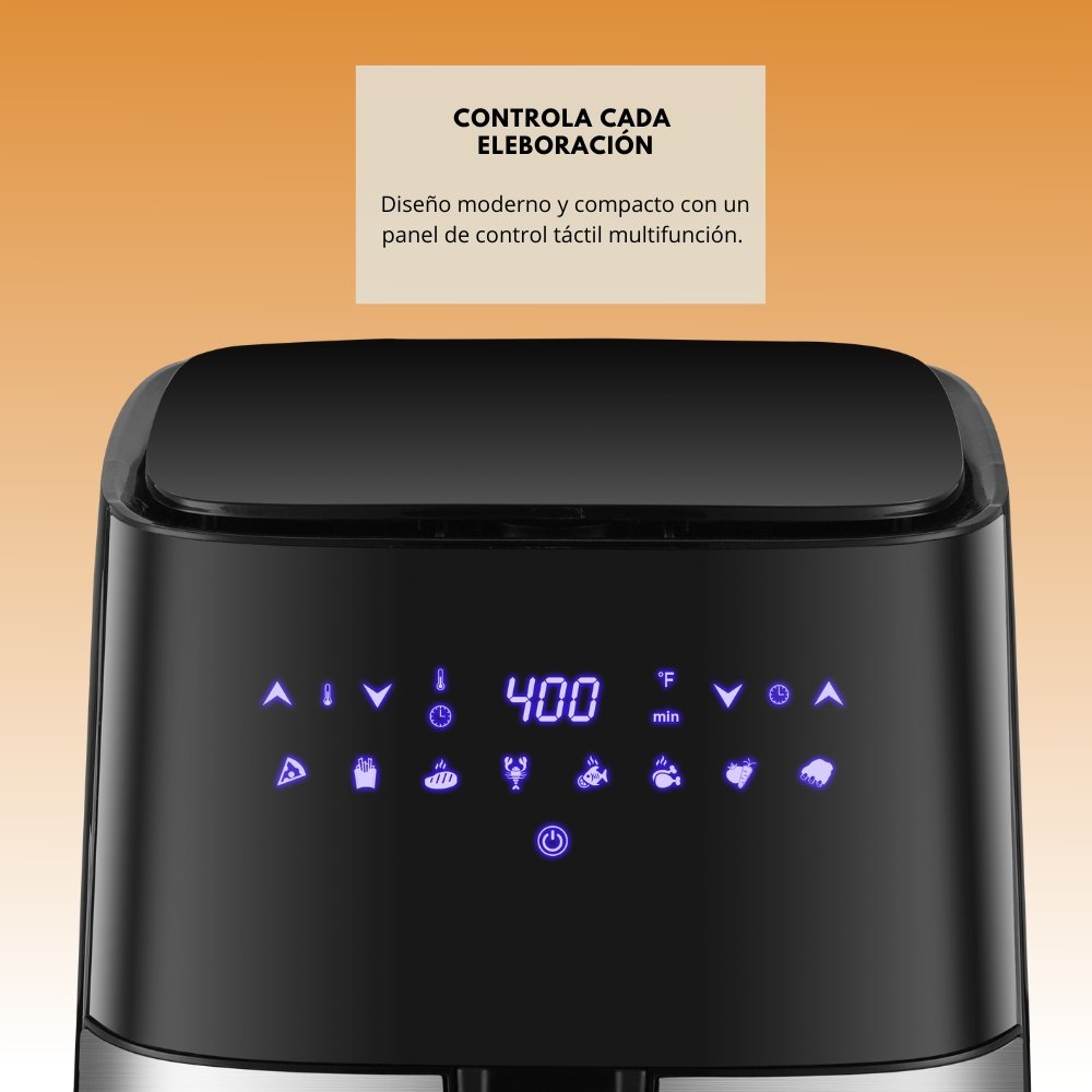 Con un control digital intuitivo, puedes seleccionar sin problemas tus 8 funciones preestablecidas, programar tu tiempo y temperatura, y empezar a freír al aire en cuestión de segundos.