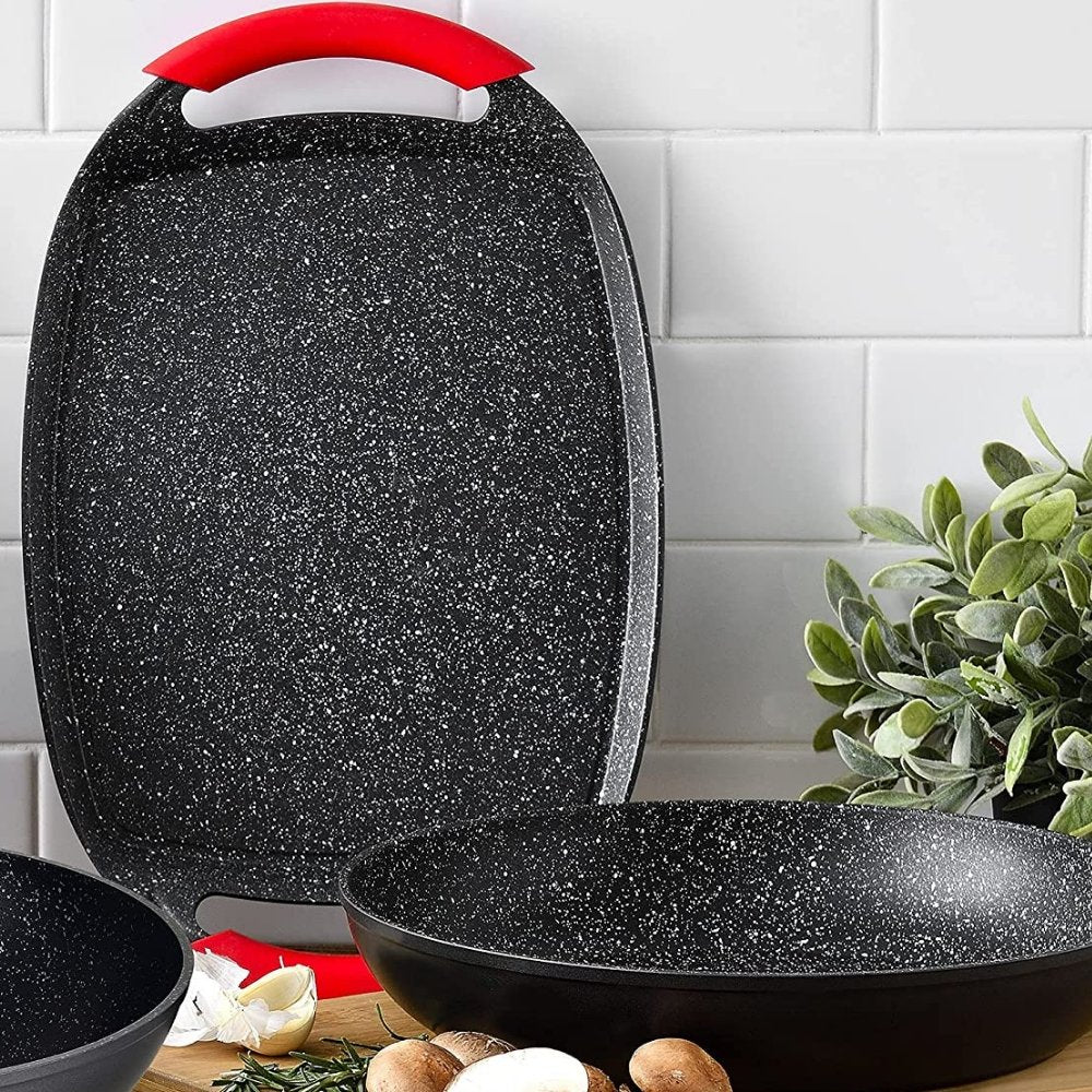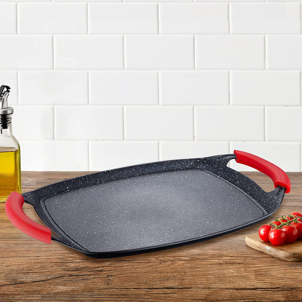 Superficie de plancha para cocinar desde carne y verduras, hasta huevos fritos, marisco, pescado e incluso crepes. Aptas para inducción, gas, vitrocerámica y eléctrica.