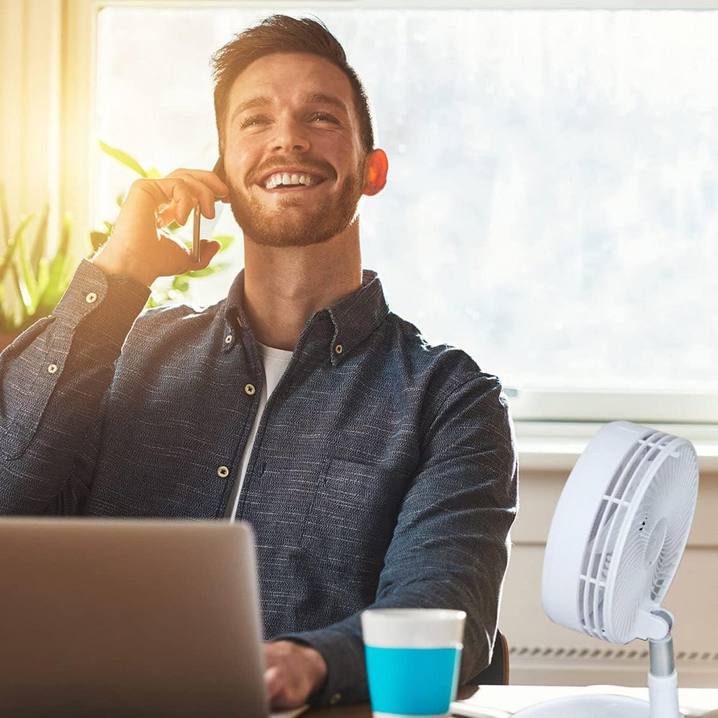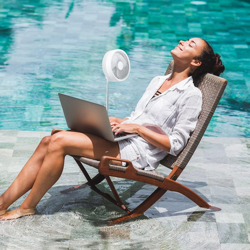 Olvídate del calor incomodo en cuestión de segundos gracias a su diseño portátil y a la duración de la batería de hasta 10 horas. El ventilador proporciona refrigeración de manera confiable, sin importar dónde te encuentres.